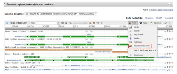 更多天然来源的UTR序列小伙伴们可直接在NCBI等网站查找。以α-珠蛋白为例,NCBI查询UTR序列的步骤为:NCBI官网(National Center for Biotechnology Information)进行查询,选择Gene查询,输入α-globin,选择人源(Homo sapiens (human))对应的基因序列,随后在基因组序列→工具→查看序列,在“序列预览窗口”中可看到,不同的序列元件被标识了不同的颜色,其中UTR序列背景为浅紫色(如图片中箭头所指示,编码区域的上游为5’UTR序列,下游为3’ UTR序列)。
